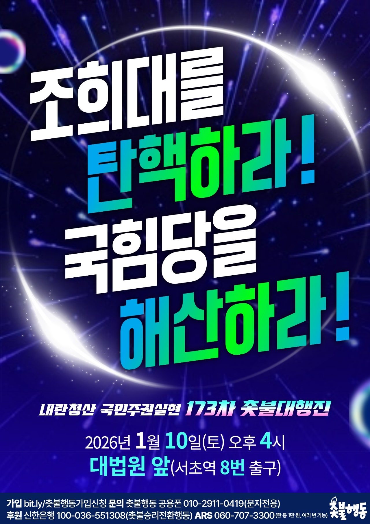 1월10일(토) 4시 대법원 앞 내란청산 173차 촛불대행진 집회 일정
