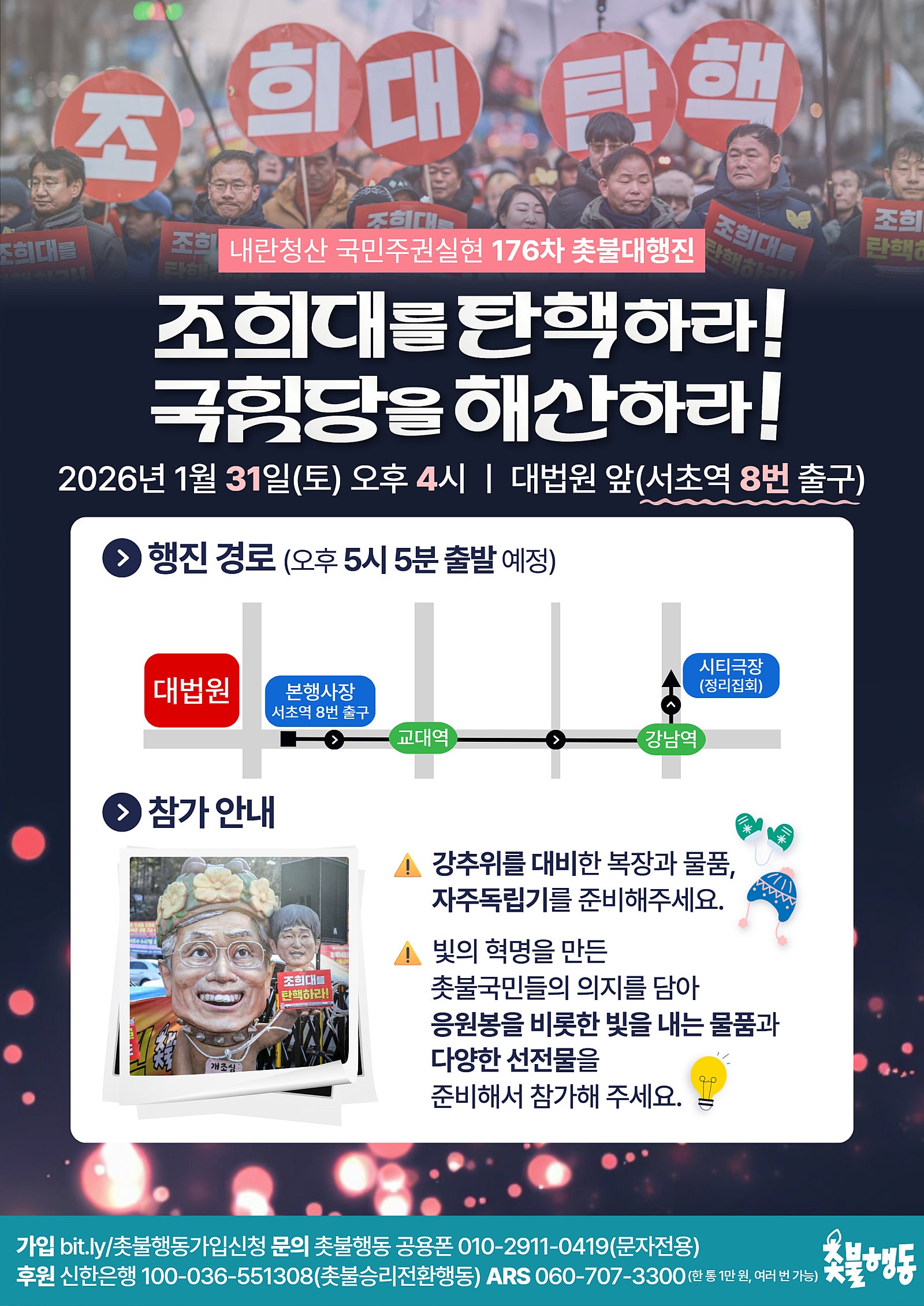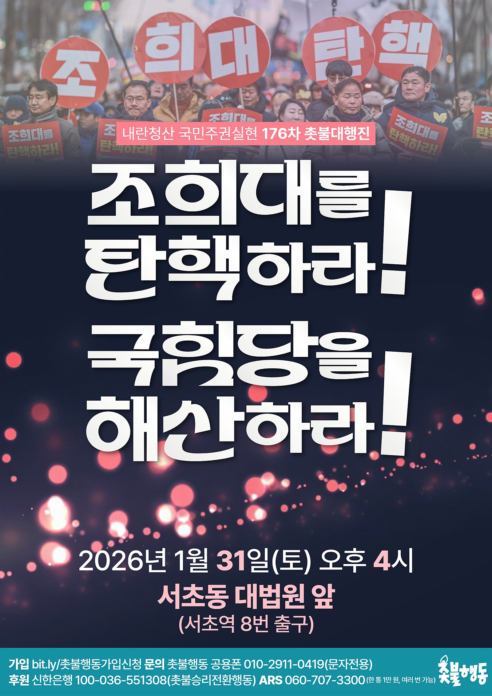 1월31일(토) 4시 대법원 앞 내란청산 176차 촛불대행진 집회 일정