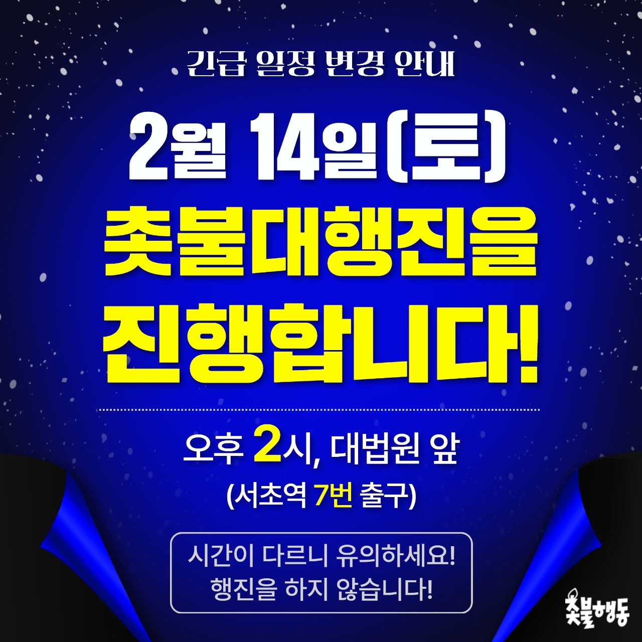 2월7일(토) 4시 대법원 앞 내란청산 177차 촛불대행진 집회 일정