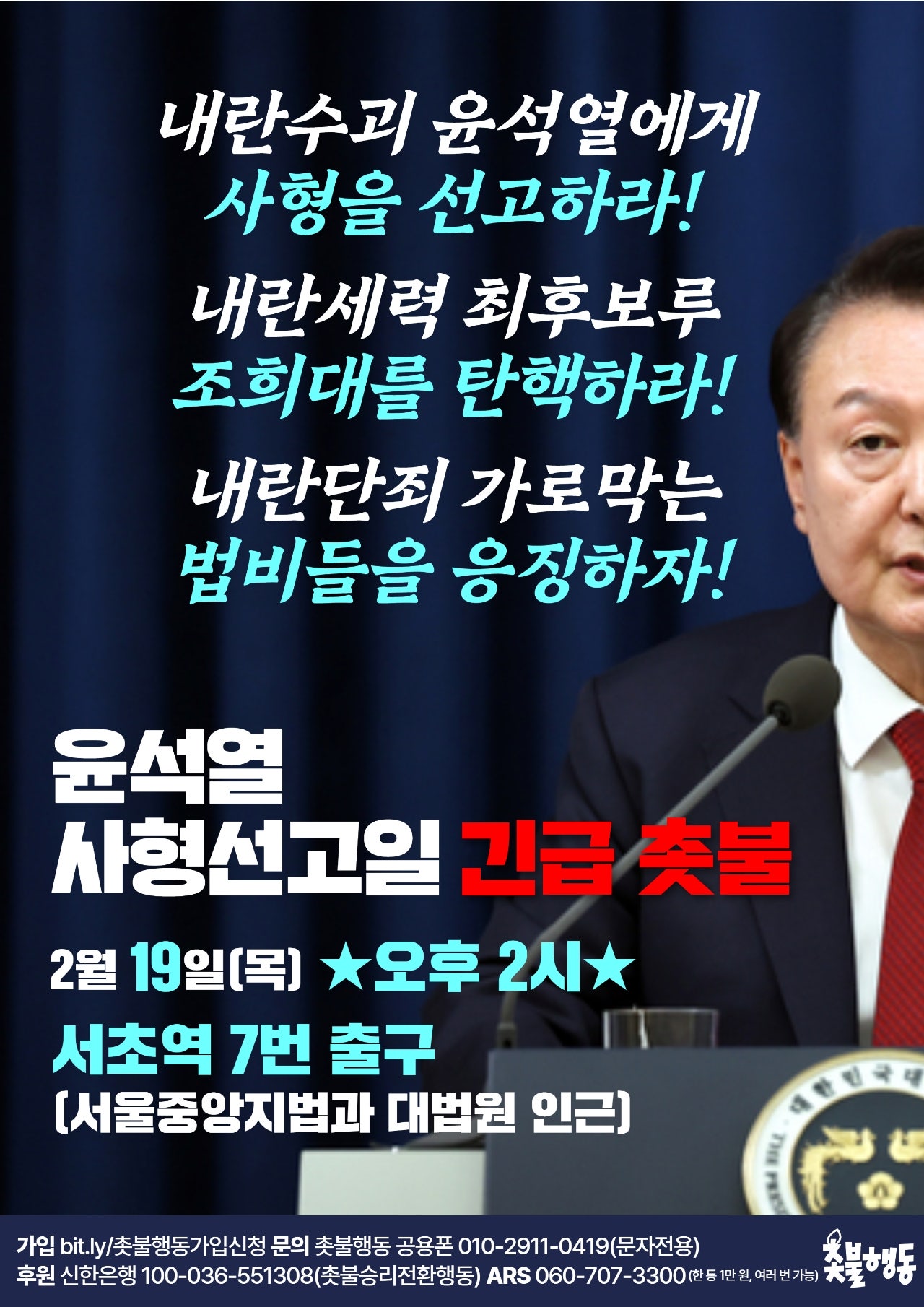 2월19일(목) 2시 서초역 7번출구 윤석열 사형선고일 긴급 촛불 일정