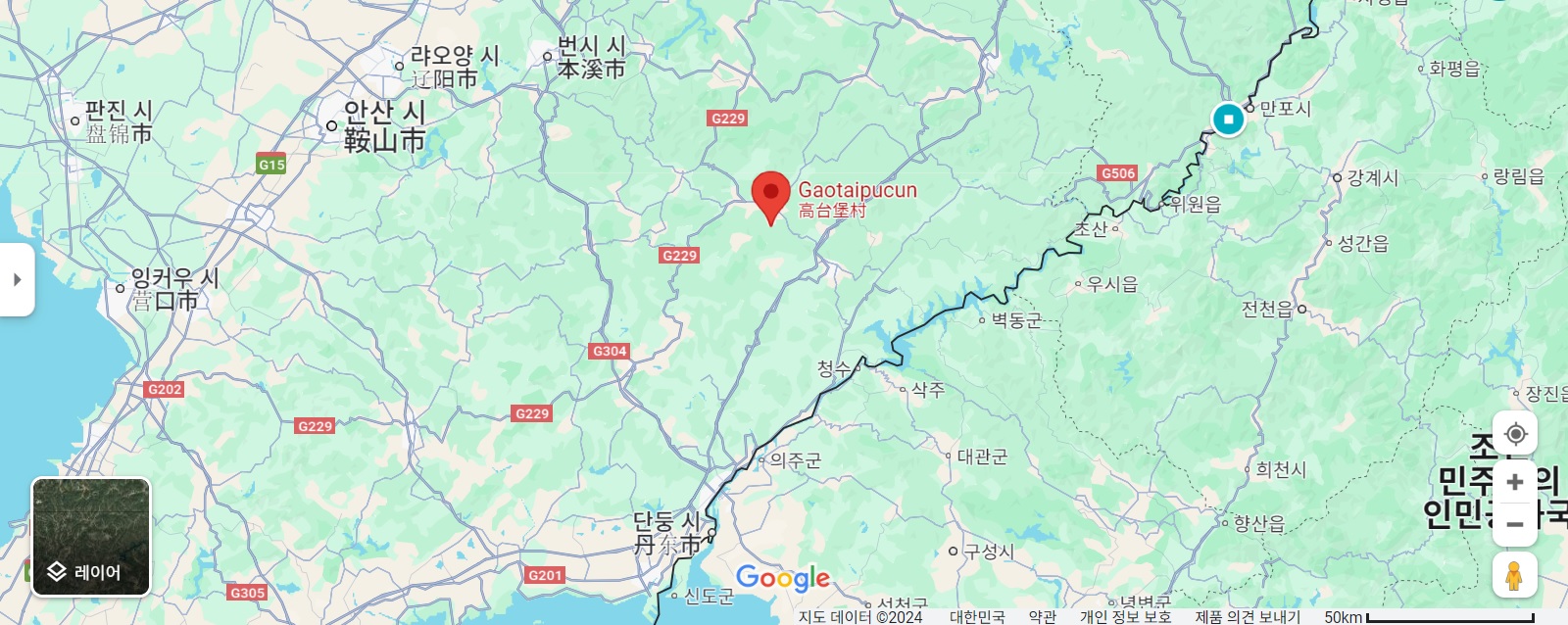 랴오닝성 단둥시 관뎬만주즈즈현 관쉐이진 카오타이바오촌 (辽宁省 丹东市 宽甸滿族自治县 灌水鎭 高台堡村)