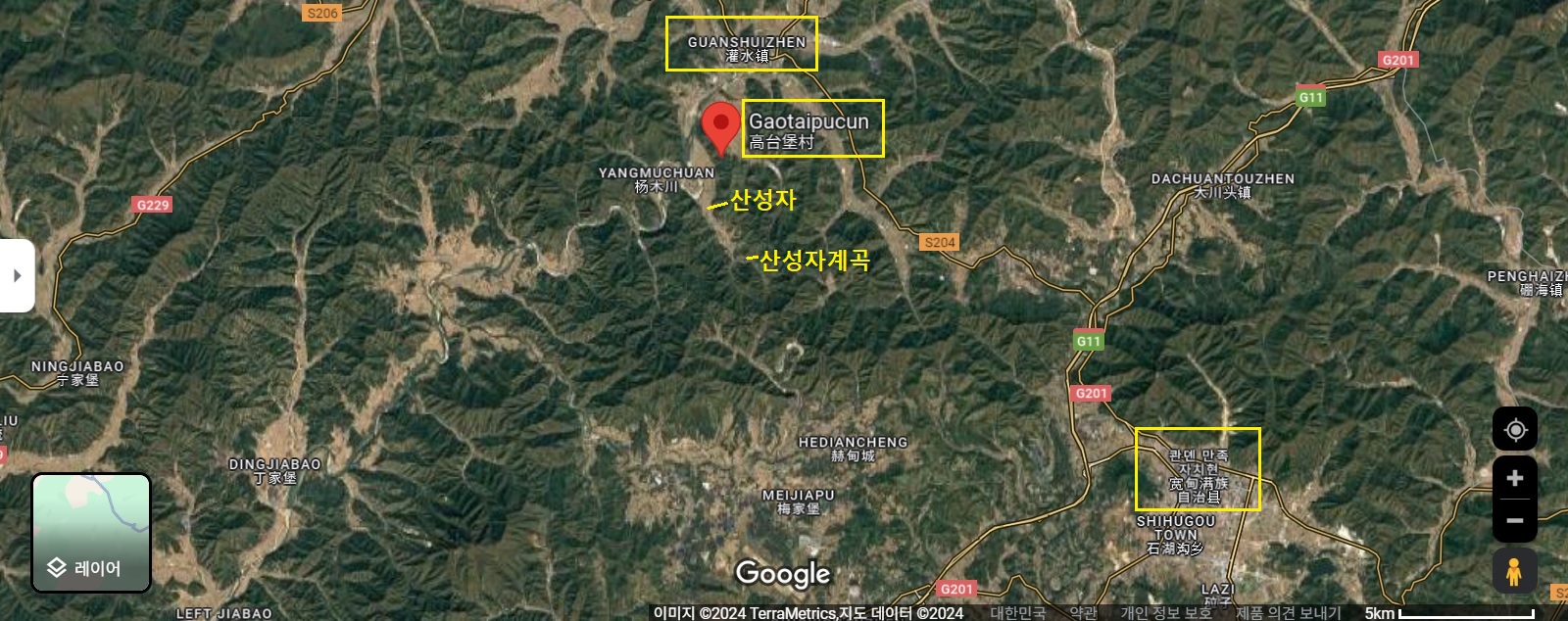2) https://tinyurl.com/yck8vsyc 산성자(山城子) 지역 : 고대보촌 남쪽 2.5km 정도 위치