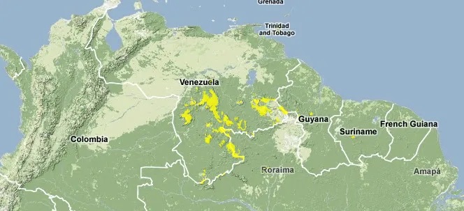 이쪽에는 남아공과는 달리 테이블 산이 많이 있다. 베네수엘라, 가이아나, 브라질의 국경 지대에는 드넓은 초원이 펼쳐지는, 그랑 사바나(La Gran Sabana)라는 지대가 있는데 이곳에만 테푸이가 1백여 개가 존재한다고 한다. 그중 기아나 고지의 최고봉이자 코난 도일의 소설 잃어버린 세계의 배경인 로라이마 테푸이(Roraima Tepui, 2,722 m)와 세계에서 가장 높은 폭포인 앙헬 폭포가 있는 아우얀 테푸이(Auyan Tepui, 2,510 m)가 제일 유명하다.