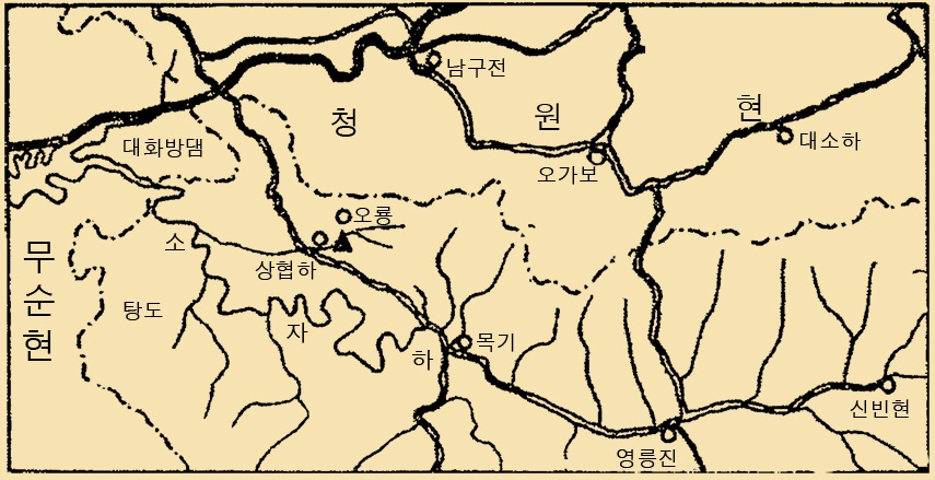 산성 남쪽 5㎞ 지점에서 동남~서북쪽으로 흐르는 소자하(蘇子河)는 본래 영반(營盤)에서 혼하에 유입되어 서남쪽으로 유향(流向)을 바꾸었는데, 1950년대 대화방(大伙房)댐의 건설로 소자하․혼하 합류처는 수몰되었음. 대화방댐 건설 이전 혼하에서 신빈현으로 들어가는 도로는 두 갈래가 있었음. 하나는 영반에서 출발하여 소자하 연안 – 하협하진(河夾河鎭) - 소자하 지류인 오룡하 - 상협하진을 거친 다음 구릉성 산지를 따라 목기진으로 진입하는 루트이고, 다른 하나는 남잡목에서 혼하를 건너 구릉성 산지를 따라 상협하진을 거쳐 목기진으로 나아가는 길임. 즉 두 갈래의 진입로는 소자하 연안이 아닌 오룡하 상류인 상협하진에서 합류하여 목기진으로 진입하였음. 두 갈래의 진입로가 상협하진에서 합류한 이유는 소자하 연안의 지형조건으로 인해 하천변을 따라 더 이상 진입할 수 없기 때문임. 즉 하류 쪽인 영반~하협하진 구간은 하천연안을 따라 도로를 개설할 수 있지만, 하협하진~목기진 구간은 만곡이 심하고 험준한 협곡이어서 더 이상 진입하기가 곤란함. 그리하여 하협하진에서 오룡하 연안과 구릉성 산지를 따라 목기진으로 진입하였던 것임. 이상과 같이 소자하 하류방면의 지형조건으로 인해 혼하에서 소자하 연안의 신빈지역으로 진입할 때 상협하진 일대를 반드시 거쳐야 했음. 상협하진 일대는 혼하에서 소자하 연안으로 진입하는 두 갈래 도로가 만나는 교통로상의 요충지인 것임.
