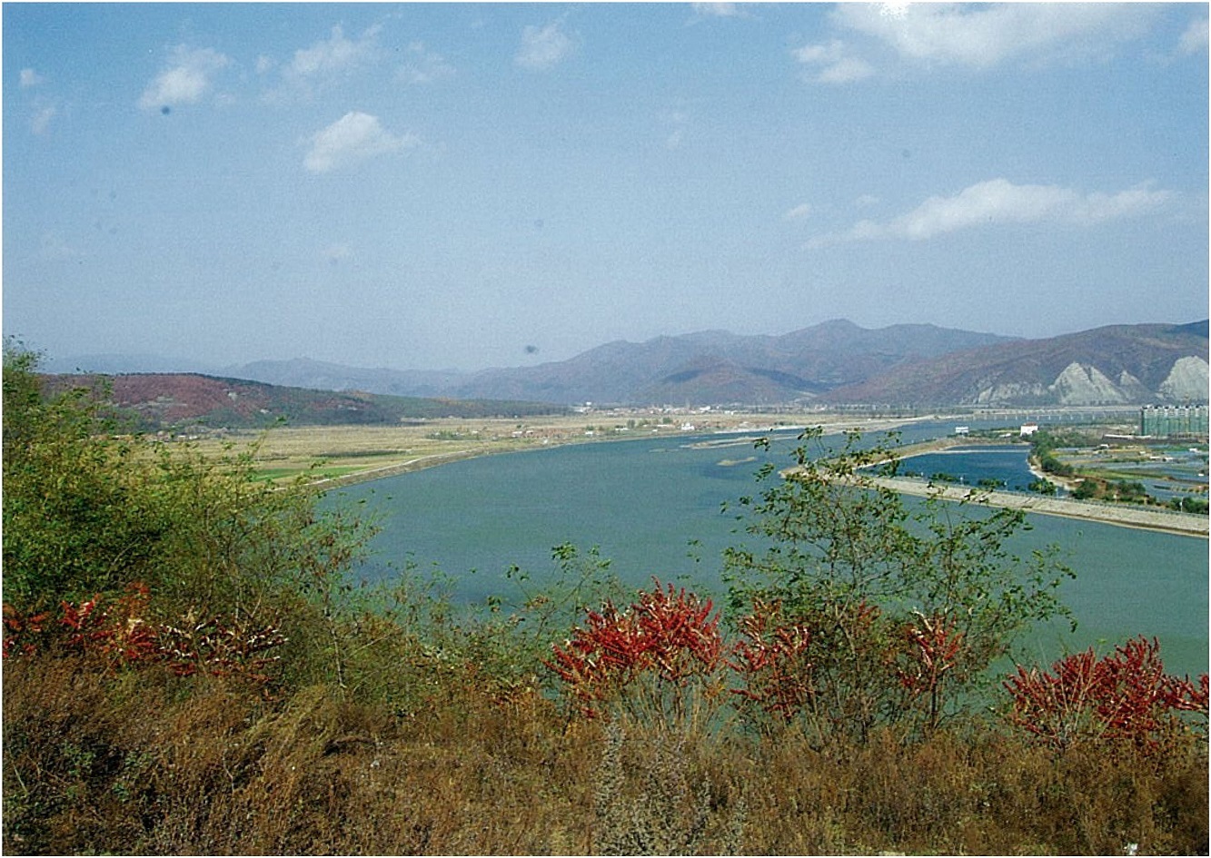 [그림 48] 환인 혼강 강변에 잘 발달한 충적층과 하안단구