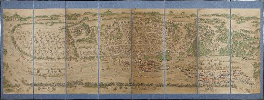 기성도병(箕城圖屛) : 조선시대 평양성의 모습을 전해주지만, 고구려 장안성의 윤곽도 짐작할 수 있다. 서울역사박물관 소장