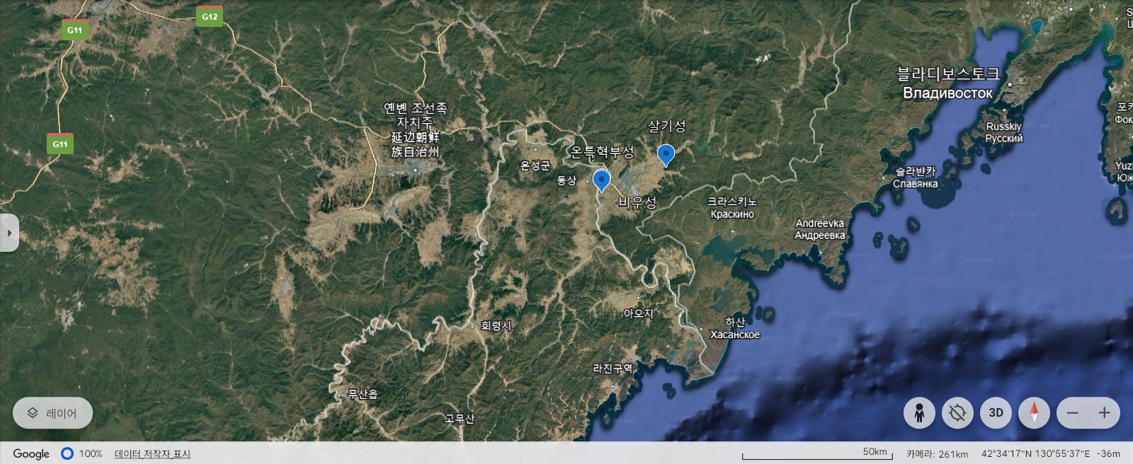 두만강 하류 일대 성 분포도