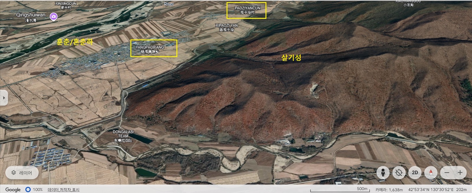 훈춘/혼춘하 일대 성 분포도