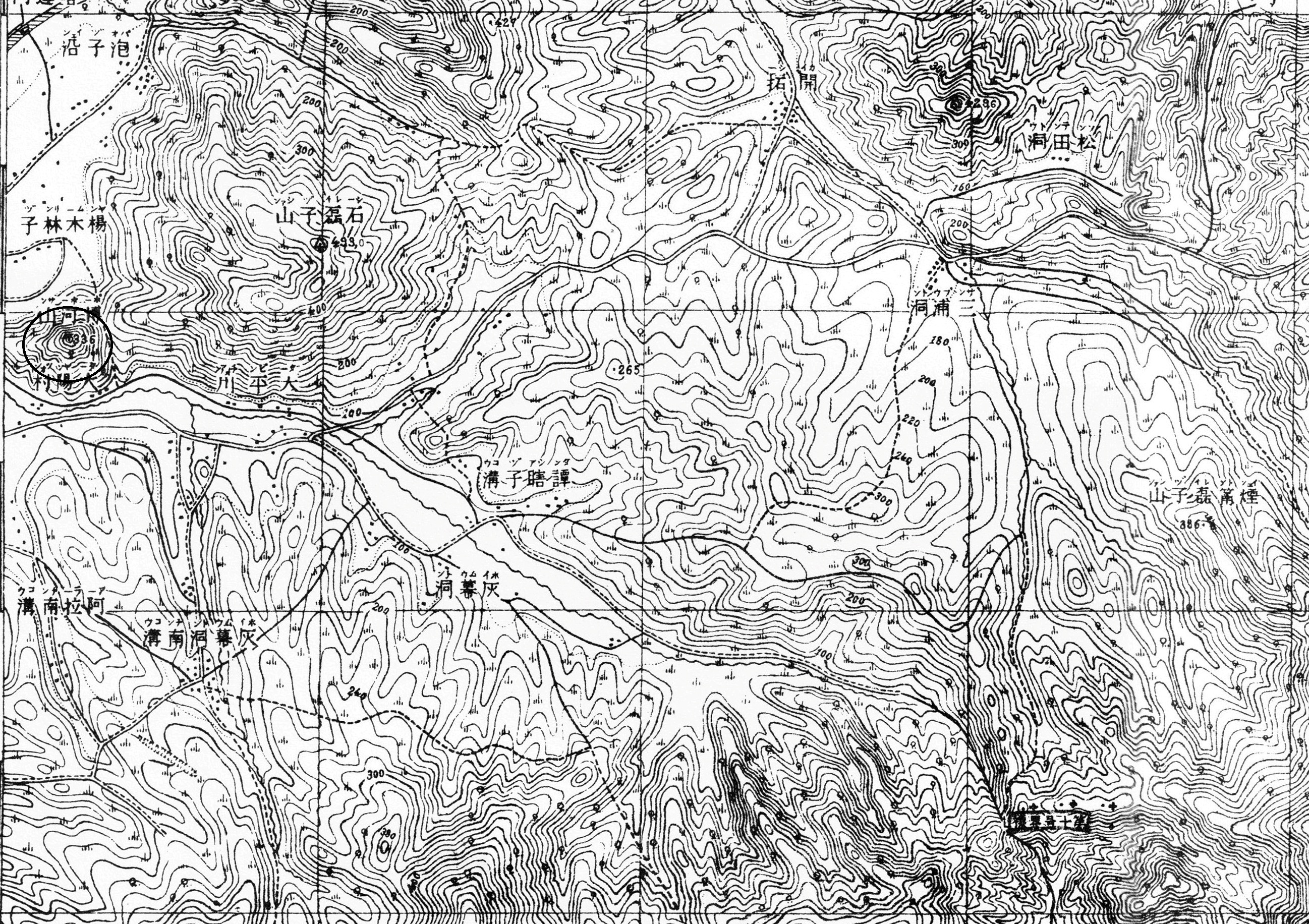 길림성 혼춘시 양포향 양목림자촌/포자연촌(吉林省 琿春市 楊泡鄕 楊木林子村/泡子沿村) 동남쪽 1.5km 훈춘/혼춘하(珲春琿春河) 하류 삼각 충적평원 동북 가장자리의 남산(南山) 위