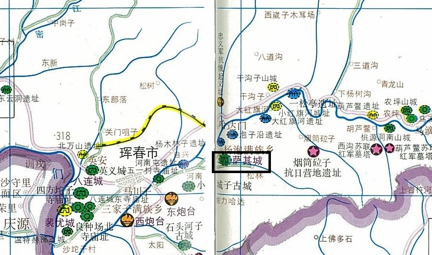 훈춘/혼춘시 인근, 훈춘/혼춘하 일대 성 분포도