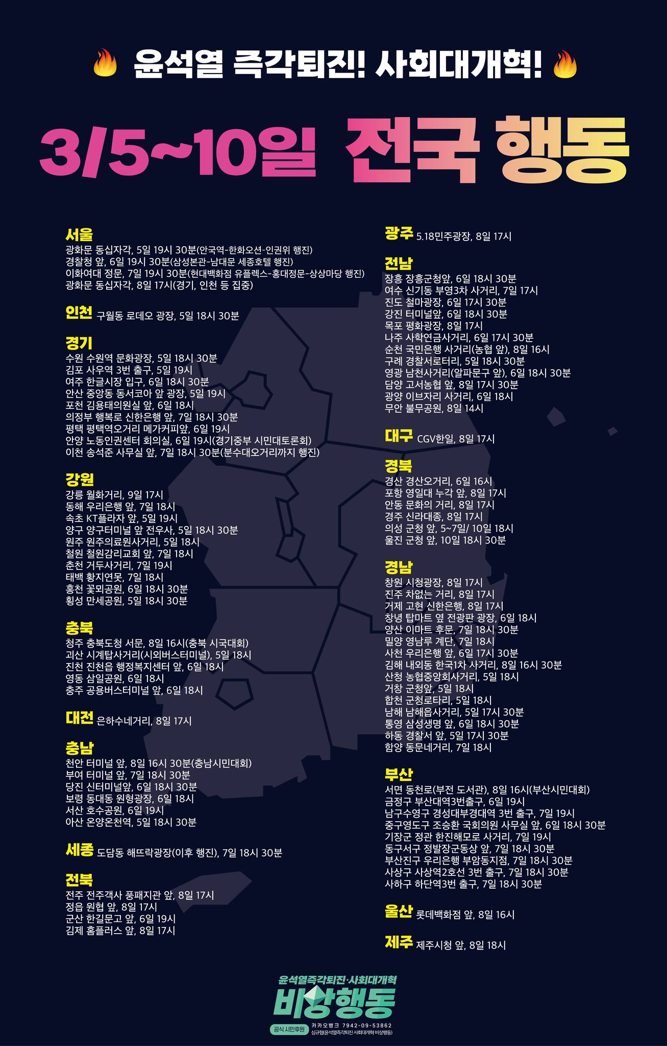 3월10일(월)-16일(일) 윤석열 탄핵 촛불집회 전국 일정 https://tadream.tistory.com/39125