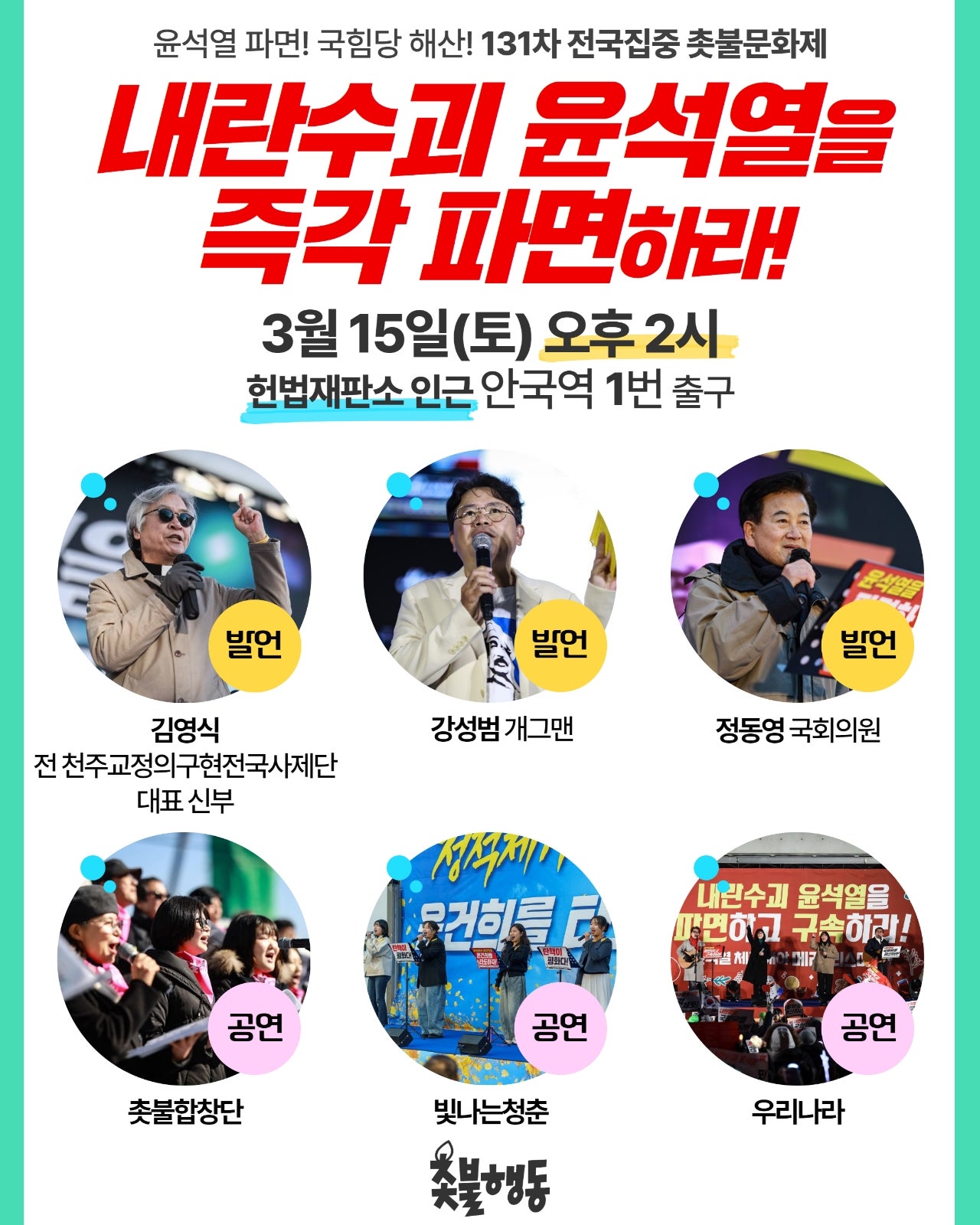 서울 3월15일(토) 2시 안국역 1번 출구 윤석열 파면 131차 전국집중 촛불문화제