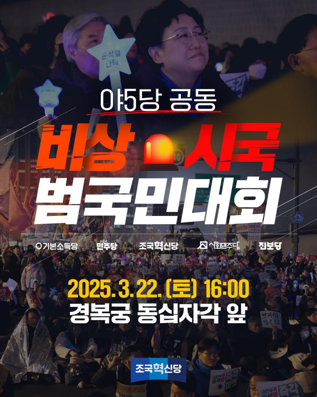 3월22일(토) 4시 동십자각 앞 야5당 비상시국 범국민대회 집회 일정