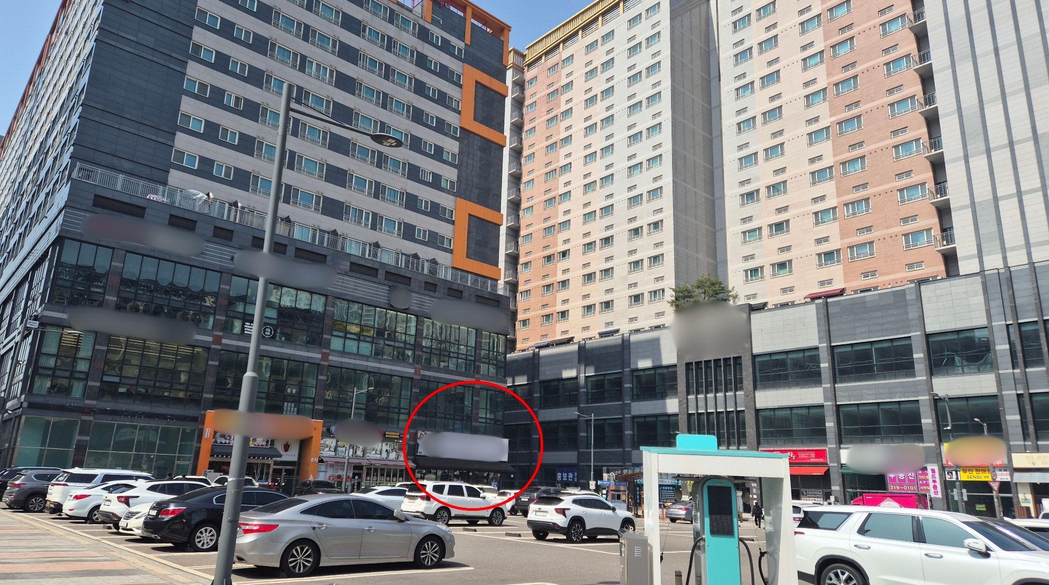-경기도 시흥시 배곧신도시 상가 일대. 빨간 동그라미로 표시한 곳이 유정복 시장이 매입한 상가. 홍봄 기자.