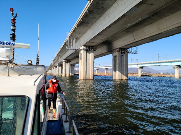 공동연구진이 낙동강 하구역 선상조사하고 있다. 한양대 신경훈 교수 제공
