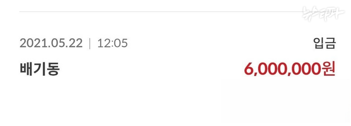 ▲배기동이 강혜경 씨 은행계좌로 600만원을 송금한 내역