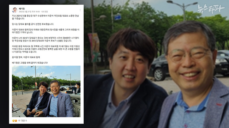 두 달 후인 2022년 3월 27일, 배 씨는 또 한 장의 사진을 올렸는데 이 역시 이준석 당대표와 함께 찍은 사진이었다.