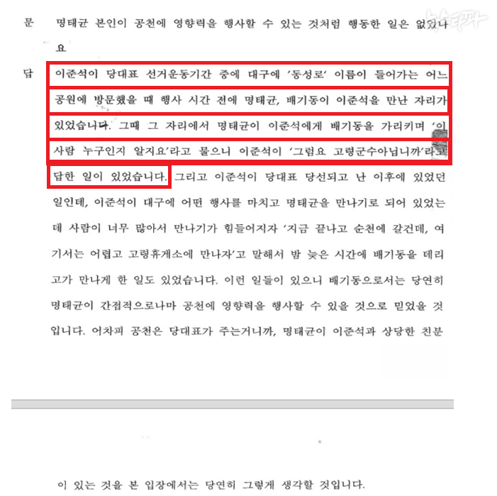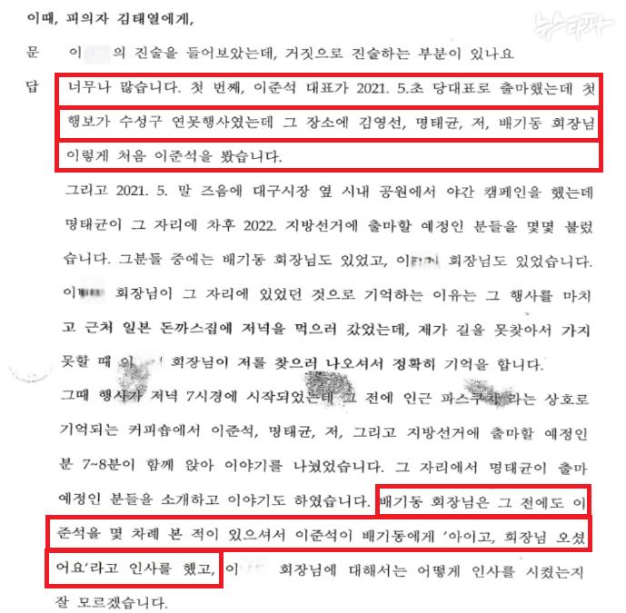 김태열 검찰 진술 "이준석이 배기동을 고령군수라고 불러"