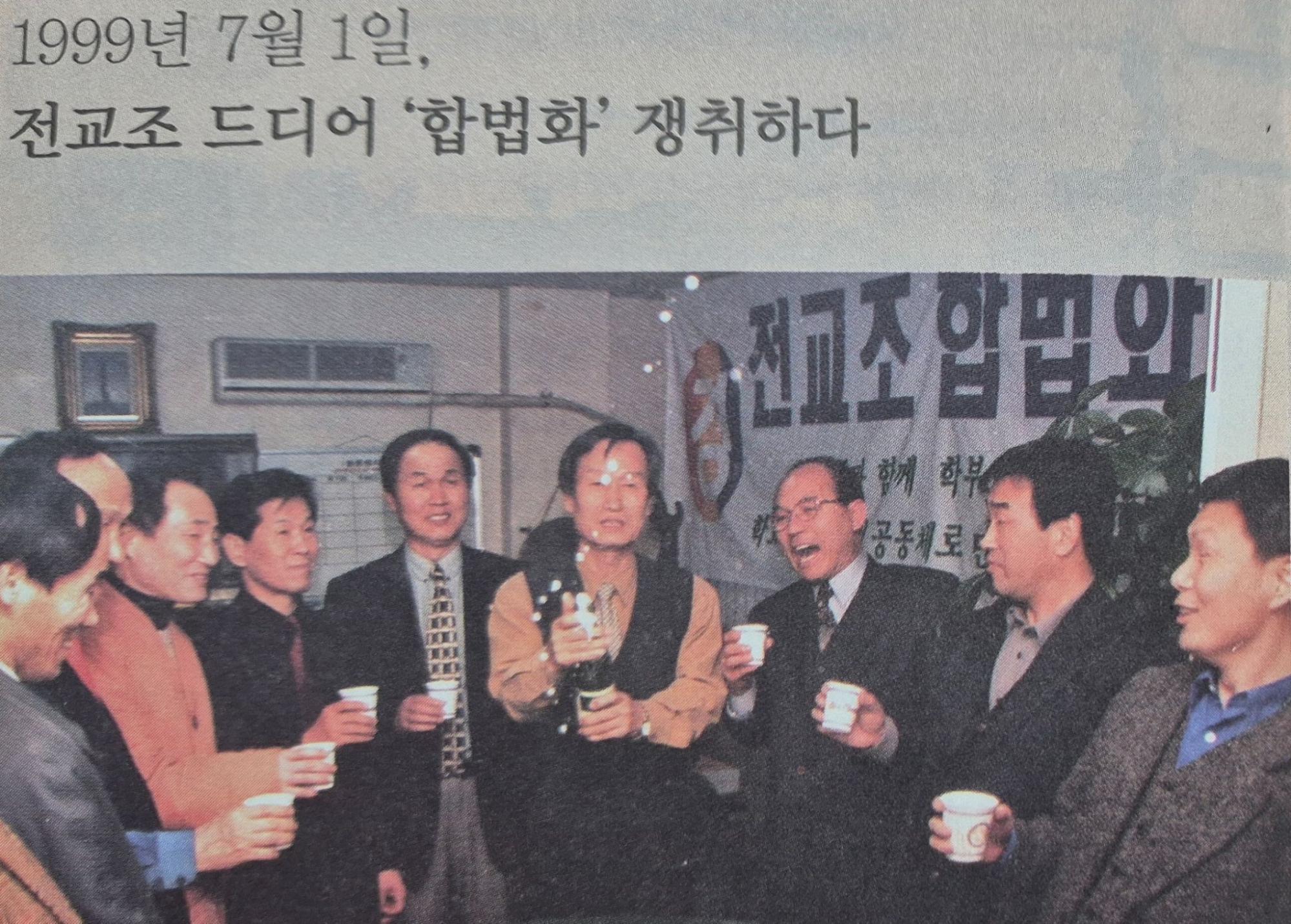 합법화를 축하하는 전교조 관계자들. (자료:전국교직원노동조합운동사2)