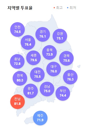 출처 : https://tinyurl.com/yn5pm5nu (다음 검색어 : 투표율)