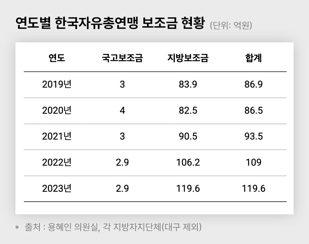 윤석열 정부 들어 자유총연맹 보조금 30% 이상 증가