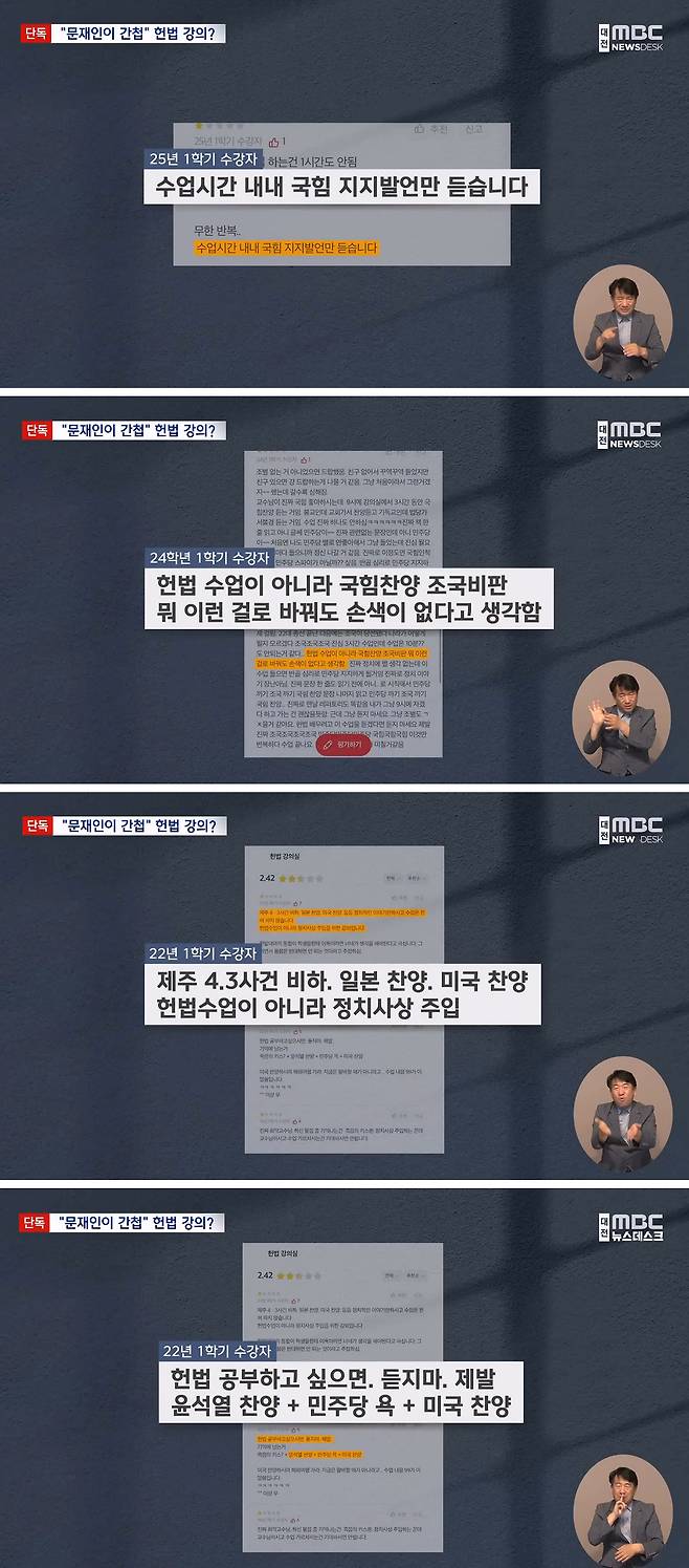 '문재인 간첩' 발언 논란‥대학 "해당 수업 강사 교체 예정" - MBC