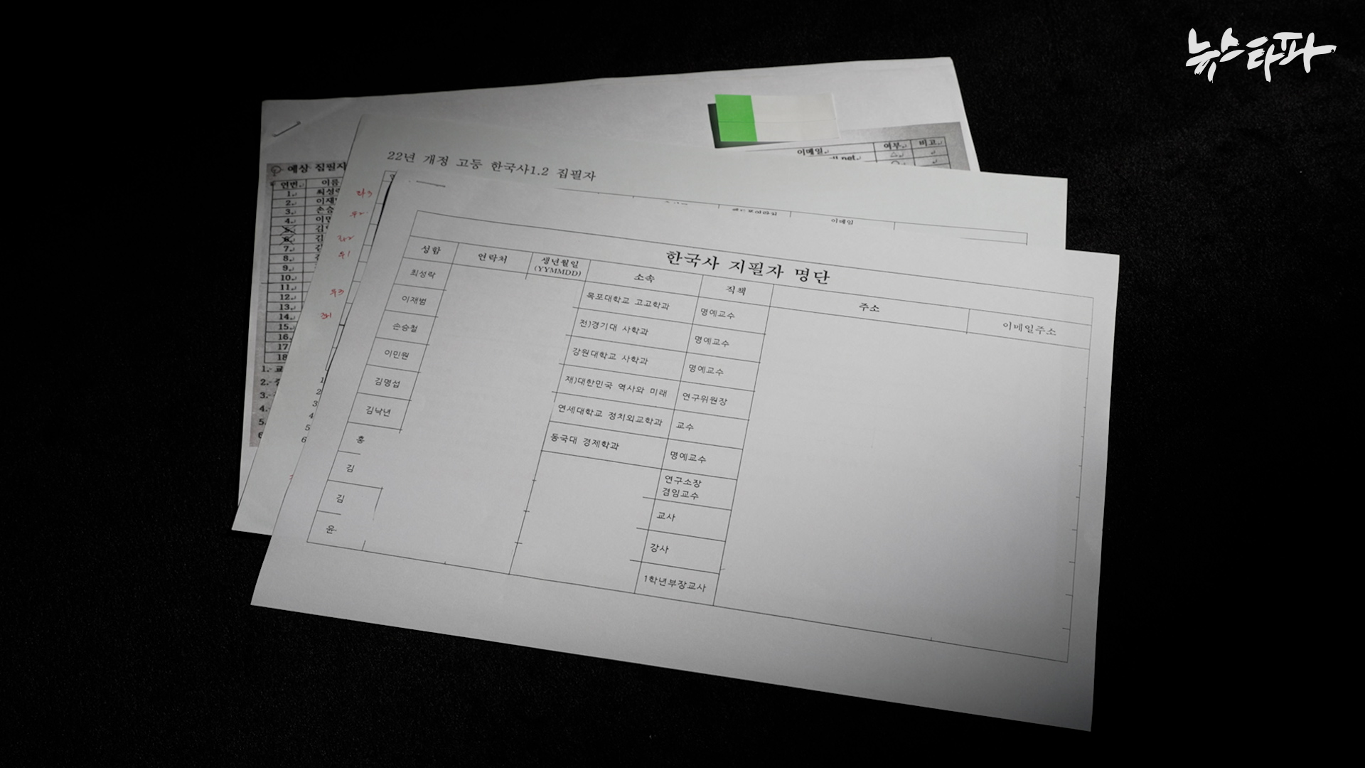 뉴스타파는 윤석열 정부 시기 극우, 뉴라이트 인사들이 은밀히 실행한 한국사 검정교과서 제작 작업의 실체를 연속보도하고 있다. 뉴스타파가 입수한 집필진 명단에 따르면, 문제의 교과서 집필 작업에는 대한교조 소속 교사들뿐 아니라 박근혜 정부 국정교과서 핵심 필진들이 대거 참여한 것으로 확인됐다. (관련 기사: ①'일제 미화' 검정교과서 제작 문건 입수...대한교조 참여 확인)