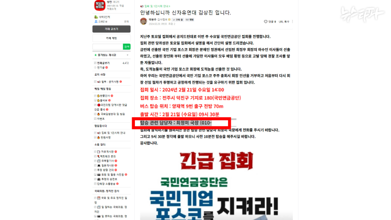 2024년 2월, 신자유연대는 서울 양재역에서 버스를 대절해 전주시에 소재한 국민연금공단까지 가서 ‘포스코 지키자’ 집회를 열었다. 당시 집회 담당자가 바로 최정미 씨였다.