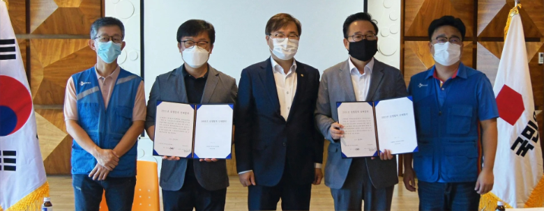 2021년 국민노조 산하 택배본부 협약식. 이희범 국민노조 위원장(오른쪽 두 번째)과 홍석준 국민의힘 의원(가운데)이 참여했다. (출처 : 국민노조)