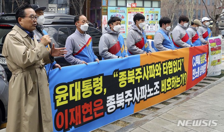 윤석열은 대선 후보 시절부터 노조를 향한 혐오를 드러냈다. 2021년 택배노동자들의 CJ대한통운 본사 점거농성을 두고 “법을 위반하면 엄정하게 다뤄야 한다”고 말하거나, 택배노조를 원망하며 극단적 선택을 한 택배 대리점주를 언급하며 “노조가 괴물이 됐다”고 발언했다. 보수 언론은 택배노조를 가리켜 ‘귀족 노조’, ‘양아치 노조’라는 내용의 혐오 기사를 쏟아냈다.