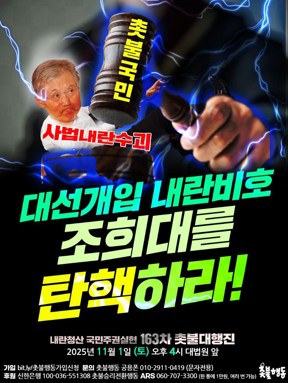 11월1일(토) 4시 대법원 앞 내란청산 163차 촛불대행진 집회 일정