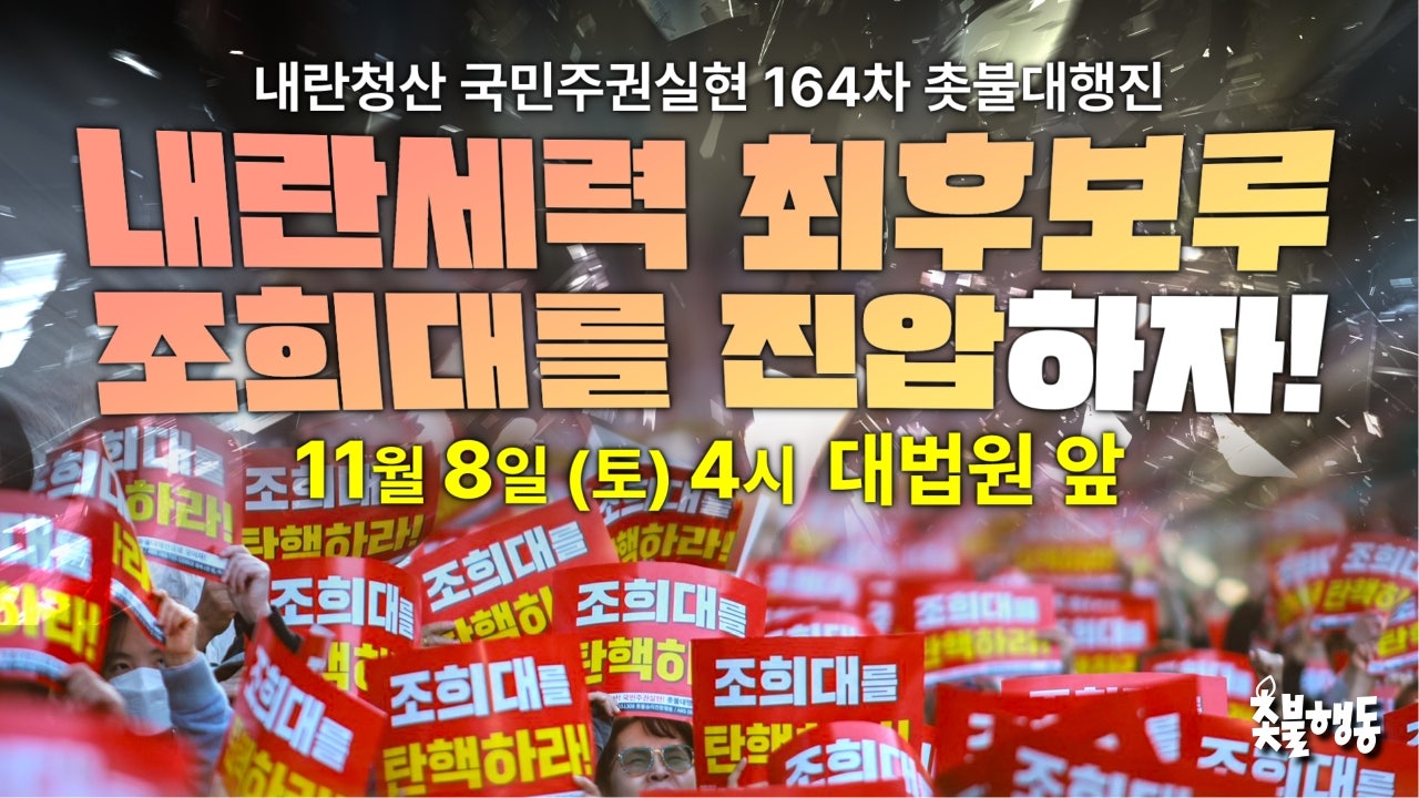 11월8일(토) 4시 대법원 앞 내란청산 164차 촛불대행진 집회 일정